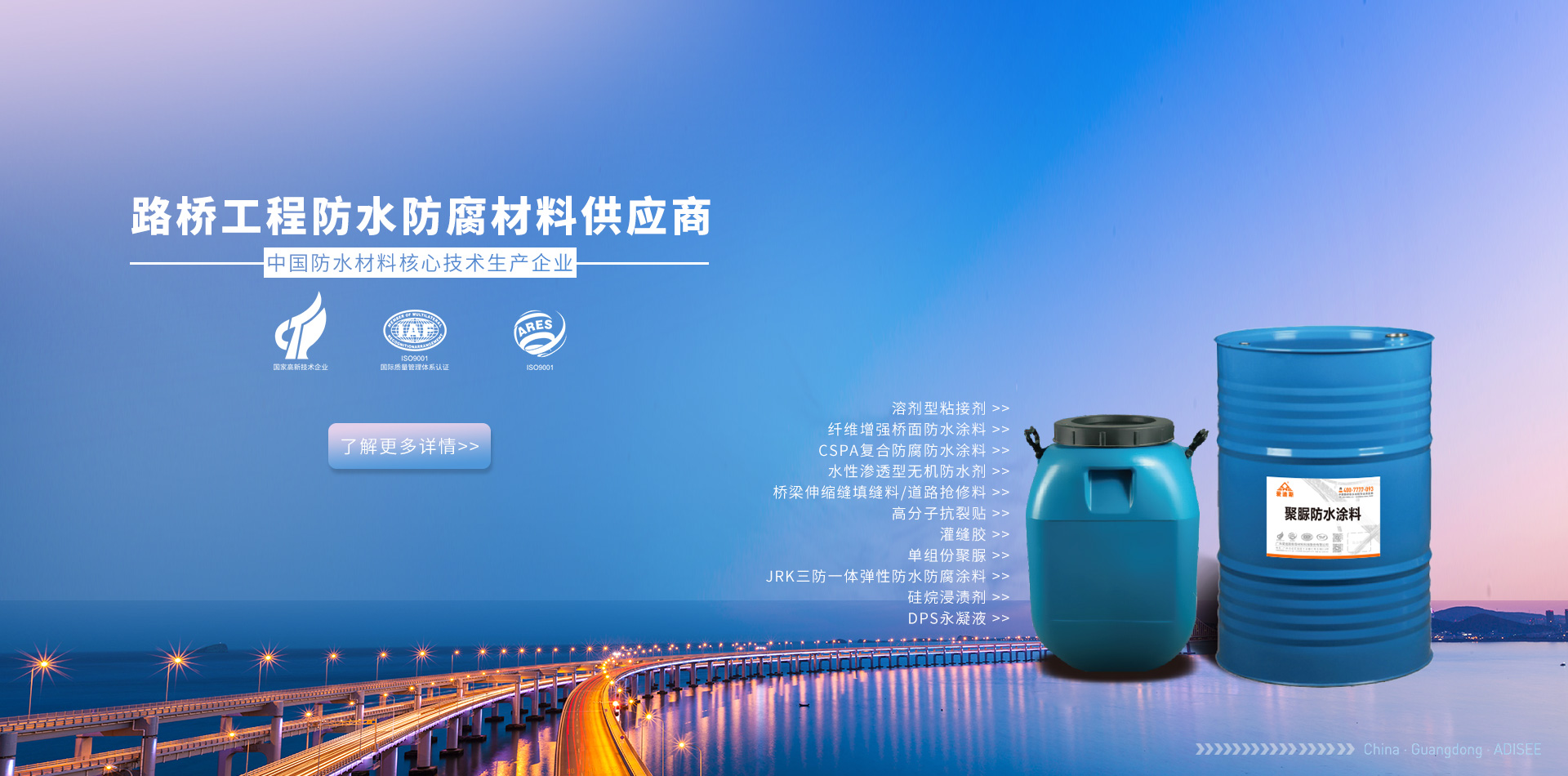 修繕補漏防水系列 廣東愛迪斯新型材料科技有限公司廣州分公司 隔音隔熱系列 路橋及防腐防水系列 家裝工程防水系列 修繕補漏防水系列專業(yè)承接路橋防水防腐工程施工及防水材料銷售,路橋防水工程遍布全國各地,多年的技術(shù)經(jīng)驗積累了一整套橋面防水病害處理方案,專業(yè)的路橋防水技術(shù),配套路橋防水施工設備,圓滿完成路橋防水施工任務,用戶滿意度評價高,處橋梁防水行業(yè)技術(shù)領(lǐng)先水...